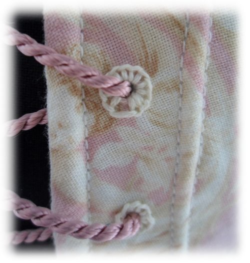 Les oeillets sont rebrodés au point de feston donc pas de pose d'oeillets.